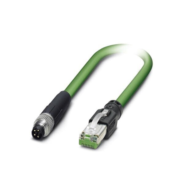 Network cable Ethernet 100 Mbps PROFINET 100 Mbps EtherCAT 100 Mbps 4-position PVC/PVC green RAL 6018 shielded Plug straight M8 / IP67 coding: A on Plug straight RJ45 / IP20 cable length: 1 m