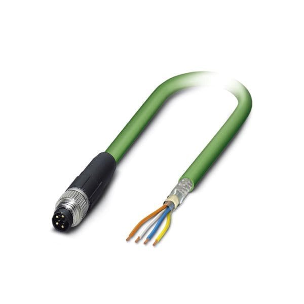 Network cable Ethernet 100 Mbps PROFINET 100 Mbps EtherCAT 100 Mbps 4-position PVC/PVC green RAL 6018 shielded Plug straight M8 / IP67 coding: A on free cable end cable length: 2 m