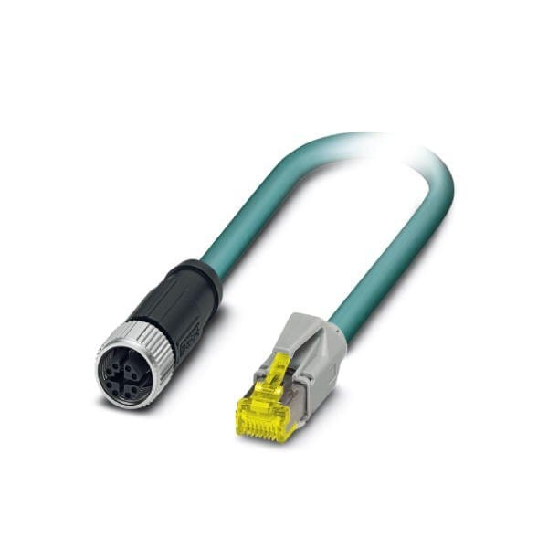 Network cable Ethernet CAT6A 10 Gbps CAT6A 10 Gbps 8-position PUR halogen-free water blue RAL 5021 shielded Advanced Shielding Technology Plug straight RJ45 / IP20 on Socket straight M12 / IP67 coding: X cable length: 2 m