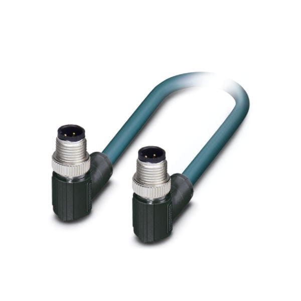 Network cable Ethernet CAT5 100 Mbps 4-position PUR halogen-free water blue RAL 5021 shielded Plug angled M12 / IP67 coding: D on Plug angled M12 / IP67 coding: D cable length: 2 m
