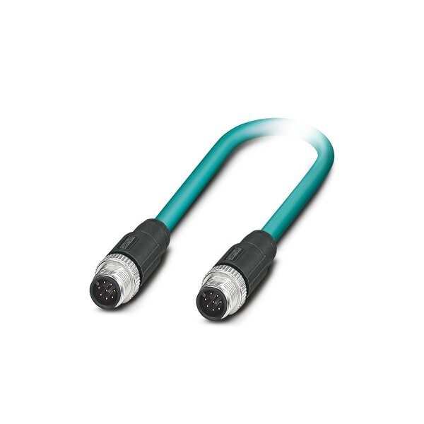 Network cable Ethernet CAT5 1 Gbps 8-position PUR halogen-free water blue RAL 5021 shielded Plug straight M12 / IP67 coding: A on Plug straight M12 / IP67 coding: A cable length: 20 m