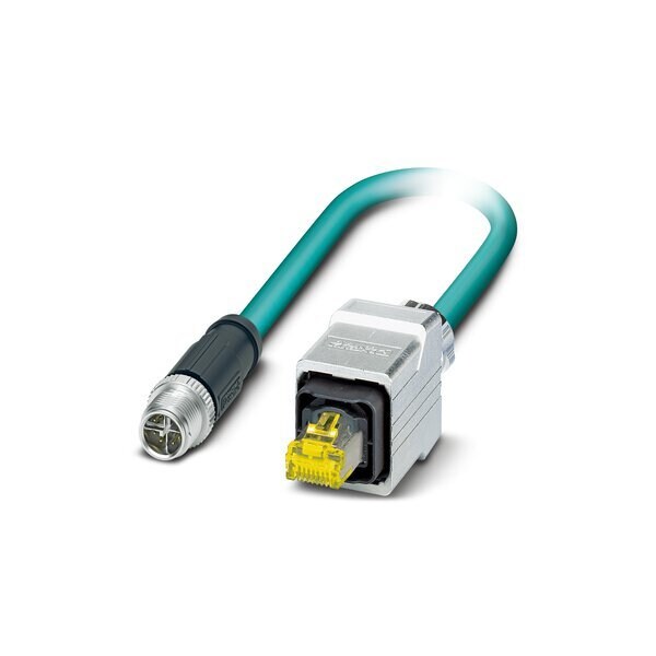 Network cable Ethernet CAT6A 10 Gbps CC-Link IE CAT6A 10 Gbps 8-position PUR halogen-free water blue RAL 5021 shielded Advanced Shielding Technology Plug straight M12 SPEEDCON / IP67 coding: X on Plug straight RJ45 Push Pull / IP67