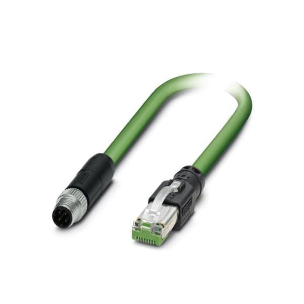 Network cable PROFINET CAT5 100 Mbps EtherCAT CAT5 100 Mbps 4-position PUR/FRNC halogen-free green RAL 6018 shielded Advanced Shielding Technology Plug straight M8 / IP67 coding: D on Plug straight RJ45 / IP20 cable length: 1 m