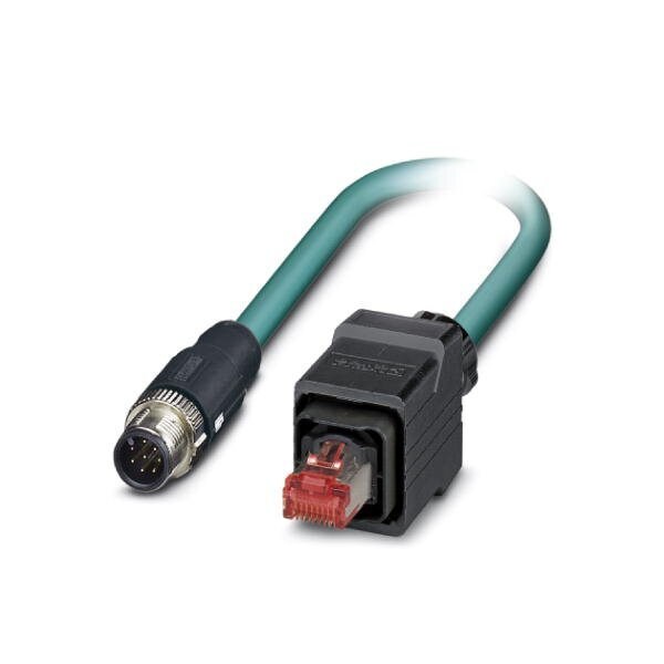 Network cable Ethernet CAT5 1 Gbps 8-position PUR water blue RAL 5021 shielded Plug straight M12 SPEEDCON / IP67 coding: A on Plug straight RJ45 Push Pull / IP67 cable length: 1 m