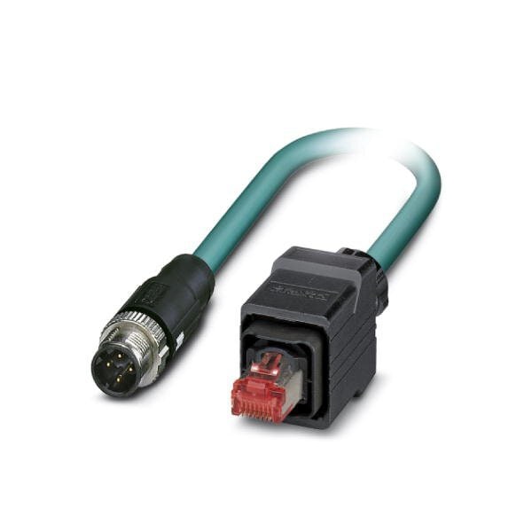 Network cable Ethernet CAT5 100 Mbps 4-position PUR water blue RAL 5021 shielded Plug straight M12 SPEEDCON / IP67 coding: D on Plug straight RJ45 Push Pull / IP67 cable length: 5 m