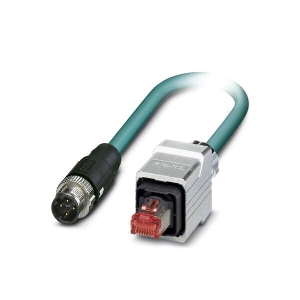 Network cable Ethernet CAT5 100 Mbps 4-position PUR water blue RAL 5021 shielded Plug straight M12 SPEEDCON / IP67 coding: D on Plug straight RJ45 Push Pull / IP67 cable length: 5 m