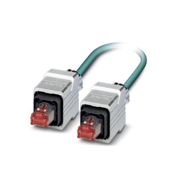 Assembled Ethernet cable CAT5e shielded 2-pair AWG 26 stranded 7-wire RAL 5021 water blue RJ45 plug/IP67 push-pull metal housing on RJ45 plug/IP67 push-pull metal housing line length 5 m