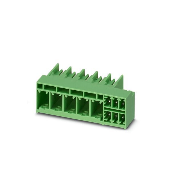 PCB hybrid header nominal cross section: 6 mm color: black nominal current: 41 A 8 A rated voltage III/2: 630 V contact surface: Silver type of contact: Male connector Number of potentials: 9 Number of rows: 1 Number of positions per row: 9 number of connectio
