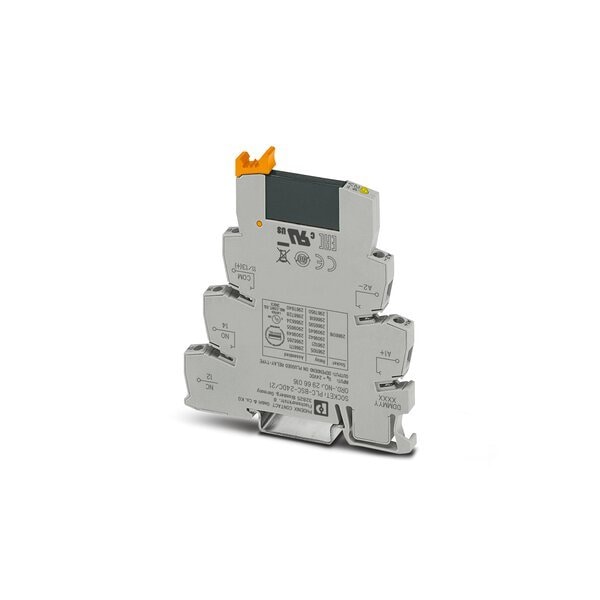 PLC-INTERFACE consisting of PLC-BSC.../21 basic terminal block with screw connection and plug-in miniature solid-state relay for mounting on DIN rail NS 35/7 5 1 N/O contact input: 24 V DC output: 3 - 33 V DC/3 A
