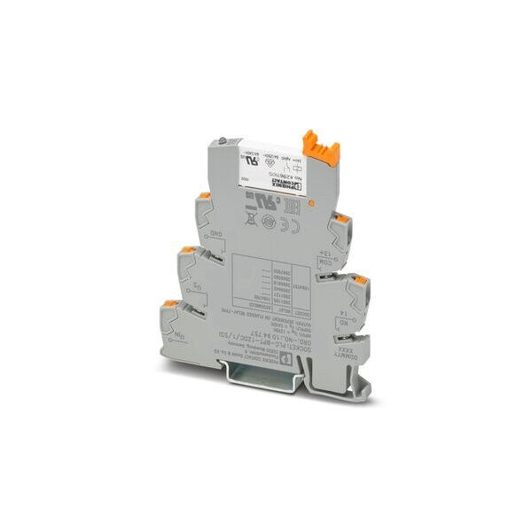 PLC-INTERFACE consisting of basic terminal block with Push-in connection and plug-in miniature relay with internal amplifier circuit and an appropriate auxiliary supply for weak signal sources 1 N/O contact 12 V DC nominal input voltage