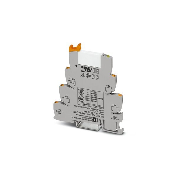 PLC-INTERFACE for output functions consisting of PLC-BPT.../ACT basic terminal block with push-in connection and plug-in miniature relay with power contact for mounting on DIN rail NS 35/7 5 1 N/O contact input voltage 24 V DC
