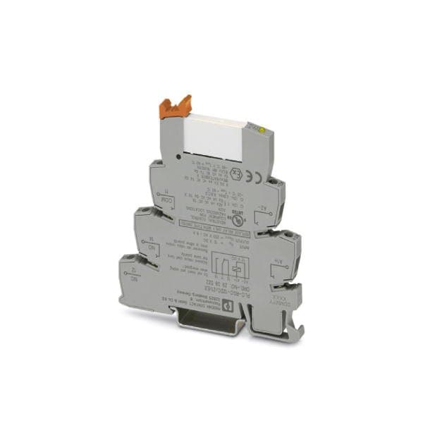 PLC-INTERFACE consisting of DIN-rail-mountable basic terminal block in 6.2 mm with screw connection and plug-in miniature relay with 6 A power contact 1 changeover contact 12 V DC input voltage. Approved according to ATEX/IECEx Zone 2 and Ex Zone Class I Div. 2.