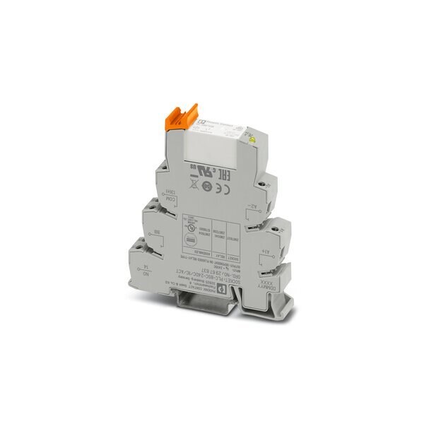 PLC-INTERFACE for high inrush currents consisting of PLC-BSC.../1 IC/ACT basic terminal block with screw connection and pluggable miniature relay for mounting on DIN rail NS 35/7.5 max. inrush current up to 800 A 1 N/O contact 24 V DC input voltage