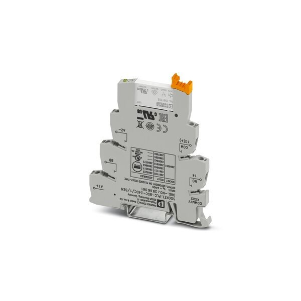 PLC-INTERFACE for input functions consisting of PLC-BSC.../SEN basic terminal block with screw connection and plug-in miniature relay with power contact for mounting on DIN rail NS 35/7 5 1 N/O contact input voltage 24 V DC