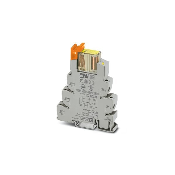 PLC-INTERFACE consisting of a relay base and plug-in safety relay with force-guided contacts in accordance with DIN EN 61810-3 Screw connection 2 changeover contacts forcibly actuated Input voltage: 24 V DC