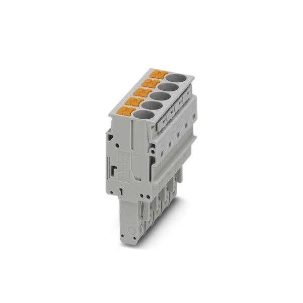 Plug nom. voltage: 1000 V nominal current: 41 A connection method: Push-in connection number of connections: 5 number of positions: 5 cross section: 0.5 mm - 10 mm AWG: 20 - 8 width: 41 mm height: 49.3 mm color: gray