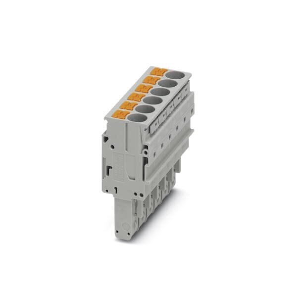 Plug nom. voltage: 1000 V nominal current: 41 A connection method: Push-in connection number of connections: 6 number of positions: 6 cross section: 0.5 mm - 10 mm AWG: 20 - 8 width: 49.2 mm height: 49.3 mm color: gray