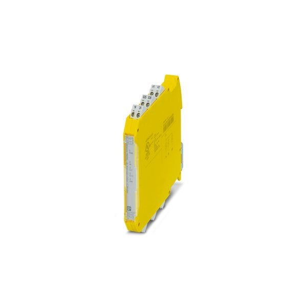 Safety relay module for safety shut-off mats switching strips emergency stop safety doors and light grids up to SILCL 3 Cat. 4 PL e 1 or 2-channel operation automatic or manual start 2 safe HL outputs 1 signal output US = 24 V DC plug-in screw terminal