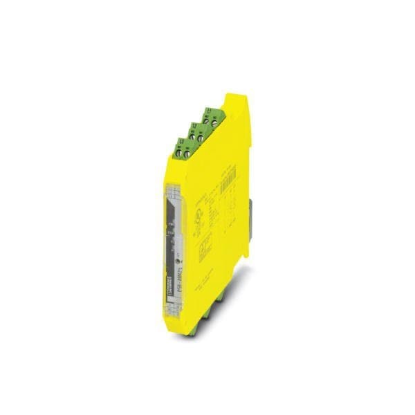Safety relay module for sensor-free standstill monitoring for 3- and 1-phase motors to SILCL 3 Cat. 3 PL e two-channel evaluation of the remanence voltage of AC three-phase and DC motors pluggable Push-in terminal block width: 12.5 mm