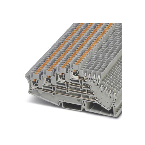 Multi-level terminal block nom. voltage: 250 V nominal current: 10 A connection method: Push-in connection number of connections: 12 cross section: 0.14 mm - 4 mm AWG: 26 - 12 width: 5.2 mm color: gray mounting type: NS 35/7 5 NS 35/15