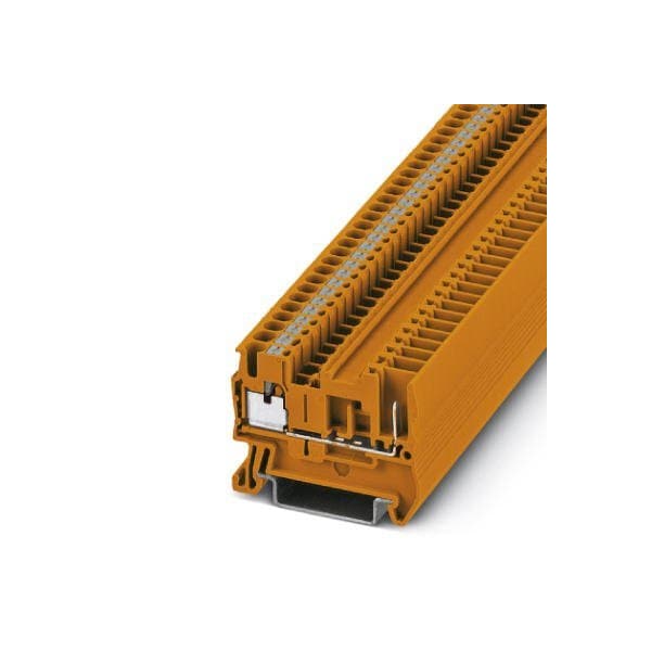 Feed-through terminal block Connection method: Push-in / plug connection Cross section: 0.14 mm - 4 mm AWG: 26 - 12 Width: 5.2 mm Height: 35.3 mm Color: orange Mounting type: NS 35/7 5 NS 35/15
