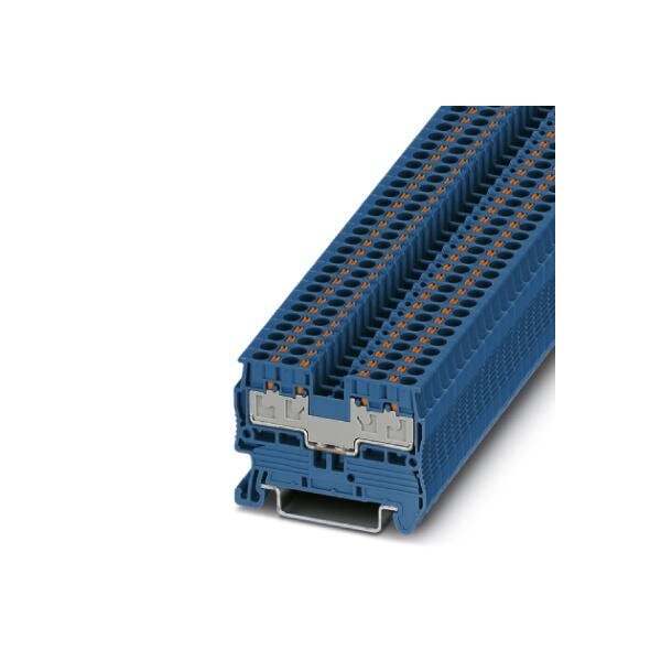 Feed-through terminal block nom. voltage: 500 V nominal current: 17.5 A connection method: Push-in connection number of connections: 4 cross section: 0.14 mm - 2.5 mm AWG: 26 - 12 width: 5.2 mm height: 35.3 mm color: blue mounting type: NS 35/7 5 NS 35/15