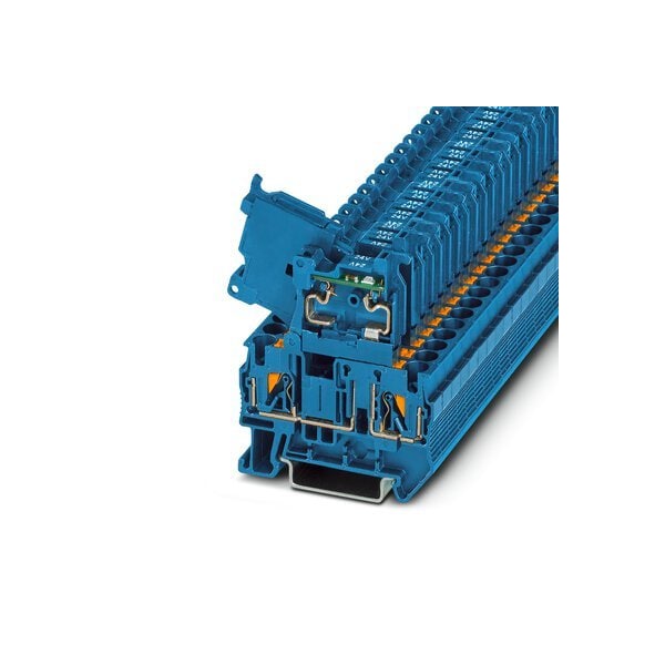 Fuse modular terminal block fuse type: Glass / ceramics / ... connection method: Push-in connection cross section: 0.2 mm- 6 mm AWG: 24 - 10 nominal current: 6.3 A nom. voltage: 24 V width: 6.2 mm fuse type: G / 5 x 20 mounting type: NS 35/7 5 NS 35/15 color: blue