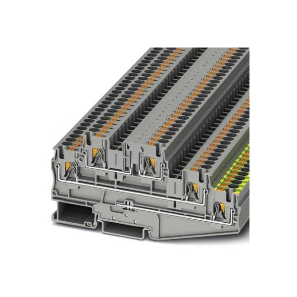 Ground modular terminal block nom. voltage: 500 V nominal current: 30 A connection method: Push-in connection Push-in connection number of connections: 5 cross section: 0.2 mm - 6 mm AWG: 24 - 10 width: 6.2 mm height: 54.5 mm color: gray mounting type: NS 35/7 5 NS 35/15