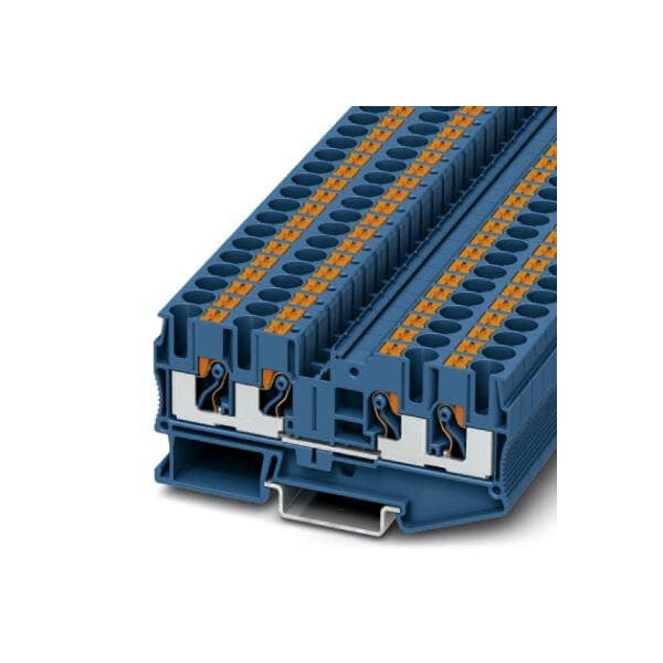 Feed-through terminal block nom. voltage: 1000 V nominal current: 41 A connection method: Push-in connection number of connections: 4 cross section: 0.5 mm - 10 mm AWG: 20 - 8 width: 8.2 mm height: 42.2 mm color: blue mounting type: NS 35/7 5 NS 35/15