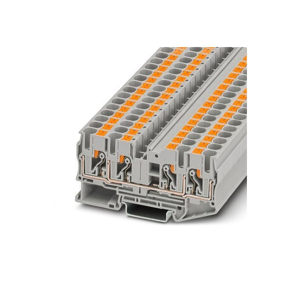 Feed-through terminal block nom. voltage: 1000 V nominal current: 41 A connection method: Push-in connection number of connections: 4 cross section: 0.5 mm - 10 mm AWG: 20 - 8 width: 8.2 mm height: 42.2 mm color: gray mounting type: NS 35/7 5 NS 35/15