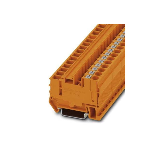 Feed-through terminal block Connection method: Push-in / plug connection Cross section: 0.5 mm - 10 mm AWG: 20 - 8 Width: 8.2 mm Color: orange Mounting type: NS 35/15 NS 35/7 5