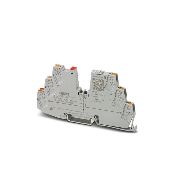 Single-channel electronic circuit breaker for protecting 24 V DC loads against overload and short circuit. Simple potential distribution using components from the CLIPLINE complete terminal block system. With electronic locking of the set nominal currents. For installation on DIN rails.