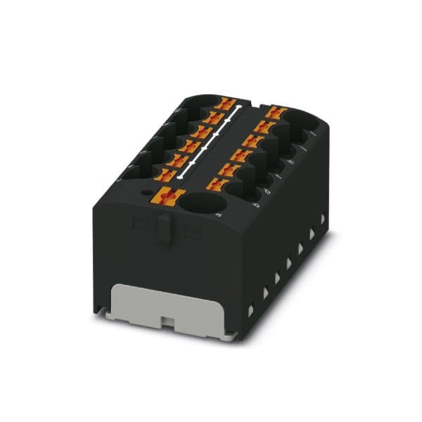 Distribution block nom. voltage: 450 V nominal current: 32 A connection method: Push-in connection Push-in connection number of connections: 13 cross section: 0.2 mm - 6 mm AWG: 24 - 10 width: 46.3 mm height: 21.7 mm color: black mounting type: for snapping ont