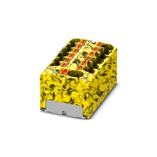 Distribution block nom. voltage: 450 V nominal current: 32 A connection method: Push-in connection Push-in connection number of connections: 13 cross section: 0.2 mm - 6 mm AWG: 24 - 10 width: 46.3 mm height: 21.7 mm color: black/yellow mounting type: for snapp