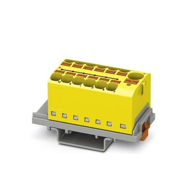 Distribution block connection method: Push-in connection Push-in connection number of connections: 13 cross section: 0.5 mm - 10 mm AWG: 20 - 6 width: 28.6 mm color: yellow mounting type: NS 35/7 5 NS 35/15