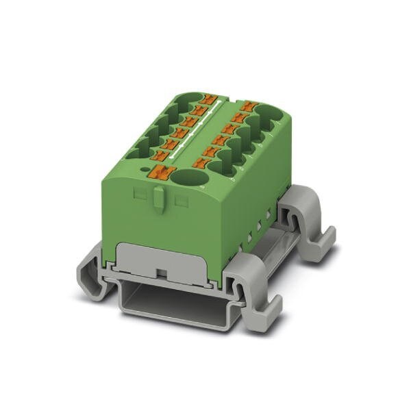 Distribution block nom. voltage: 800 V nominal current: 32 A connection method: Push-in connection Push-in connection number of connections: 13 cross section: 0.2 mm - 6 mm AWG: 24 - 10 width: 46.3 mm color: green mounting type: NS 35/7 5 NS 35/15