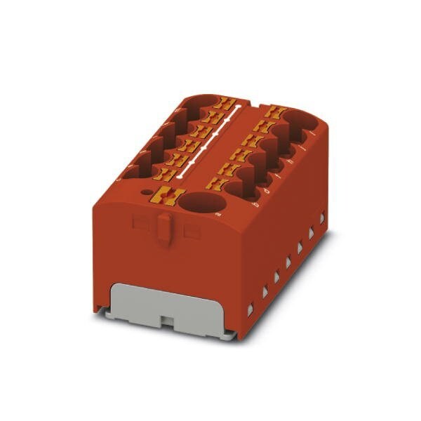 Distribution block nom. voltage: 450 V nominal current: 32 A connection method: Push-in connection Push-in connection number of connections: 13 cross section: 0.2 mm - 6 mm AWG: 24 - 10 width: 46.3 mm height: 21.7 mm color: red mounting type: for snapping onto