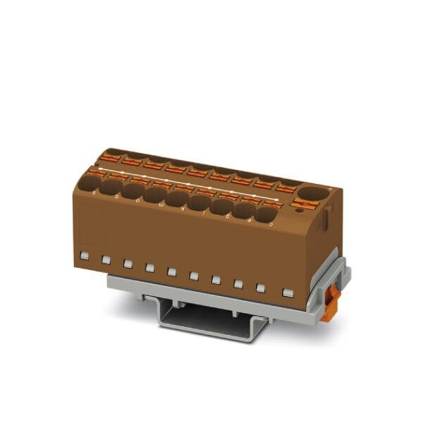 Distribution block connection method: Push-in connection Push-in connection number of connections: 19 cross section: 0.5 mm - 10 mm AWG: 20 - 6 width: 28.6 mm color: brown mounting type: NS 35/7 5 NS 35/15