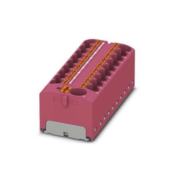 Distribution block nom. voltage: 450 V nominal current: 32 A connection method: Push-in connection Push-in connection number of connections: 19 cross section: 0.2 mm - 6 mm AWG: 24 - 10 width: 64.8 mm height: 21.7 mm color: pink mounting type: for snapping onto
