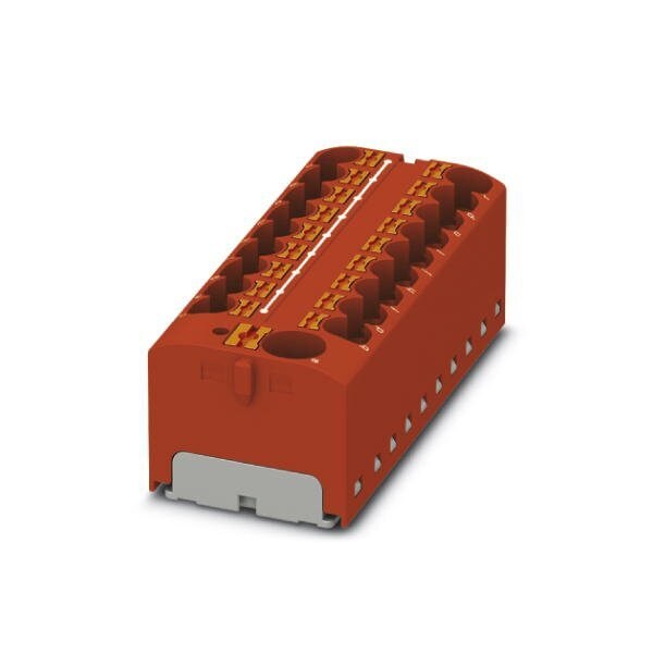 Distribution block nom. voltage: 450 V nominal current: 32 A connection method: Push-in connection Push-in connection number of connections: 19 cross section: 0.2 mm - 6 mm AWG: 24 - 10 width: 64.8 mm height: 21.7 mm color: red mounting type: for snapping onto