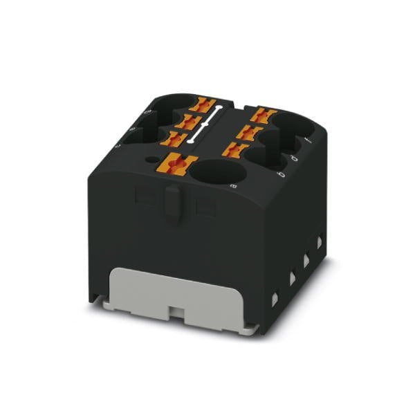 Distribution block nom. voltage: 450 V nominal current: 32 A connection method: Push-in connection Push-in connection number of connections: 7 cross section: 0.2 mm - 6 mm AWG: 24 - 10 width: 27.9 mm height: 21.7 mm color: black mounting type: for snapping onto