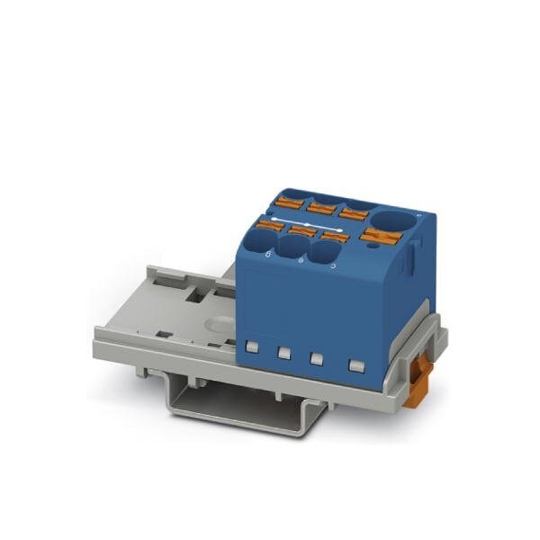 Distribution block nom. voltage: 800 V nominal current: 63 A connection method: Push-in connection Push-in connection number of connections: 7 cross section: 0.2 mm - 6 mm AWG: 24 - 10 width: 28.6 mm color: blue mounting type: NS 35/7 5 NS 35/15