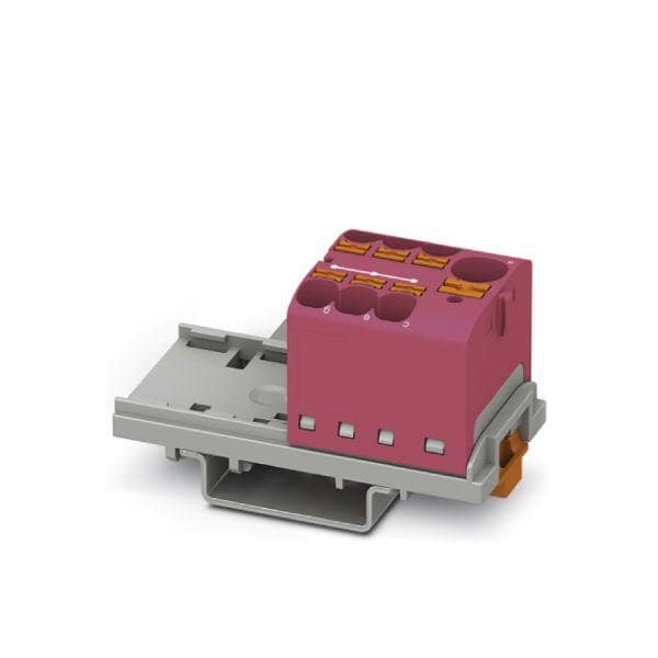 Distribution block nom. voltage: 800 V nominal current: 63 A connection method: Push-in connection Push-in connection number of connections: 7 cross section: 0.2 mm - 6 mm AWG: 24 - 10 width: 28.6 mm color: pink mounting type: NS 35/7 5 NS 35/15