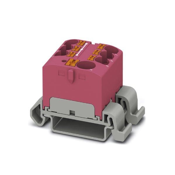 Distribution block nominal current: 57 A connection method: Push-in connection Push-in connection number of connections: 7 cross section: 0.5 mm - 10 mm AWG: 20 - 6 width: 27.9 mm color: pink mounting type: NS 35/7 5 NS 35/15