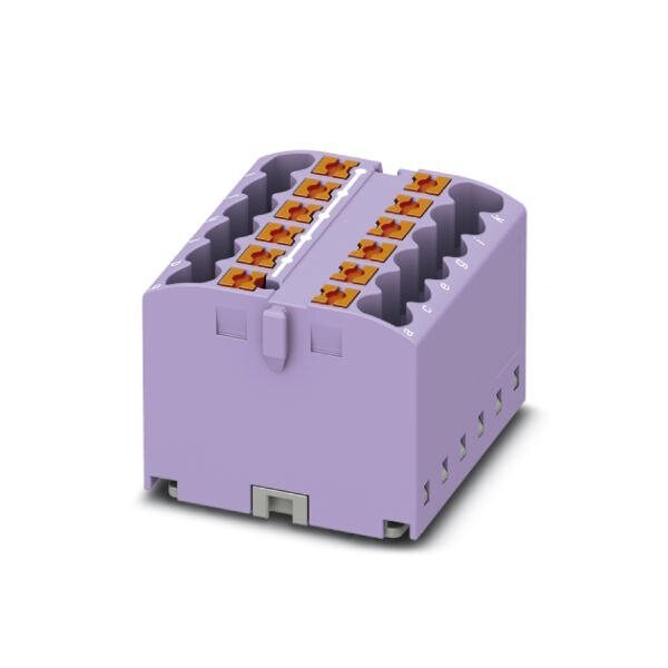 Distribution block Basic terminal block The blocks can be bridged with one another via the conductor shaft. For corresponding plug-in bridges see accessories nom. voltage: 450 V nominal current: 24 A connection method: Push-in connection number of connections: 12 cro