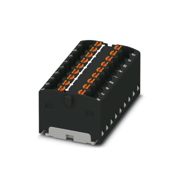 Distribution block bridged internally The blocks can be bridged with one another via the conductor shaft. For corresponding plug-in bridges see accessories nom. voltage: 450 V nominal current: 17.5 A connection method: Push-in connection number of connections: 18 cro