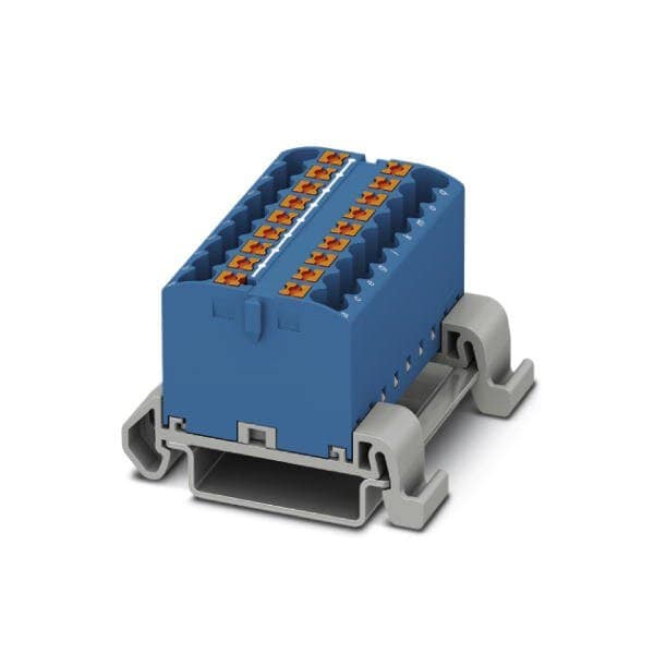 Distribution block Block with horizontal alignment The blocks can be bridged with one another via the conductor shaft. For corresponding plug-in bridges see accessories nom. voltage: 690 V nominal current: 24 A connection method: Push-in connection number of connectio