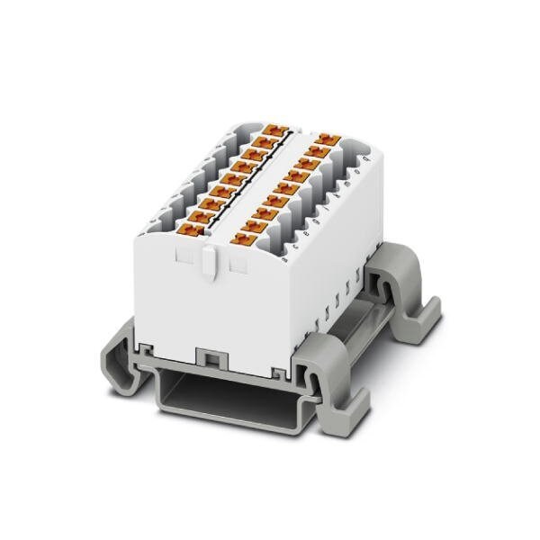 Distribution block Block with horizontal alignment The blocks can be bridged with one another via the conductor shaft. For corresponding plug-in bridges see accessories nom. voltage: 690 V nominal current: 24 A connection method: Push-in connection number of connectio