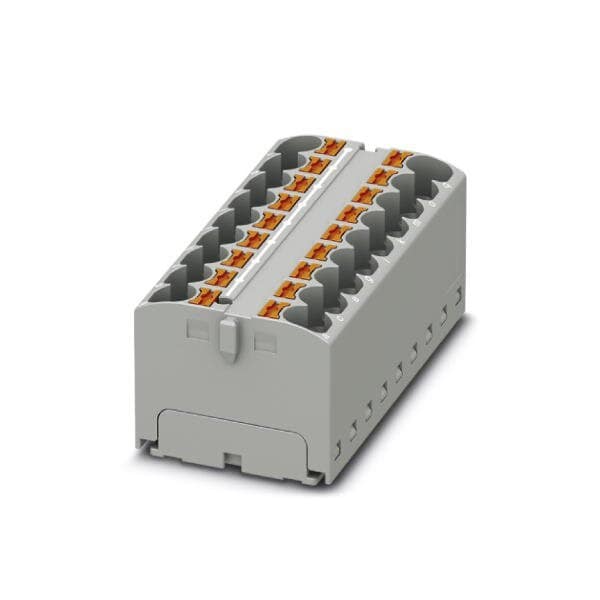Distribution block bridged internally The blocks can be bridged with one another via the conductor shaft. For corresponding plug-in bridges see accessories nom. voltage: 450 V nominal current: 32 A connection method: Push-in connection number of connections: 18 cross