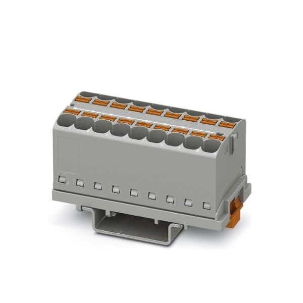 Distribution block Block with vertical alignment The blocks can be bridged with one another via the conductor shaft. For corresponding plug-in bridges see accessories nom. voltage: 800 V nominal current: 32 A connection method: Push-in connection number of connections